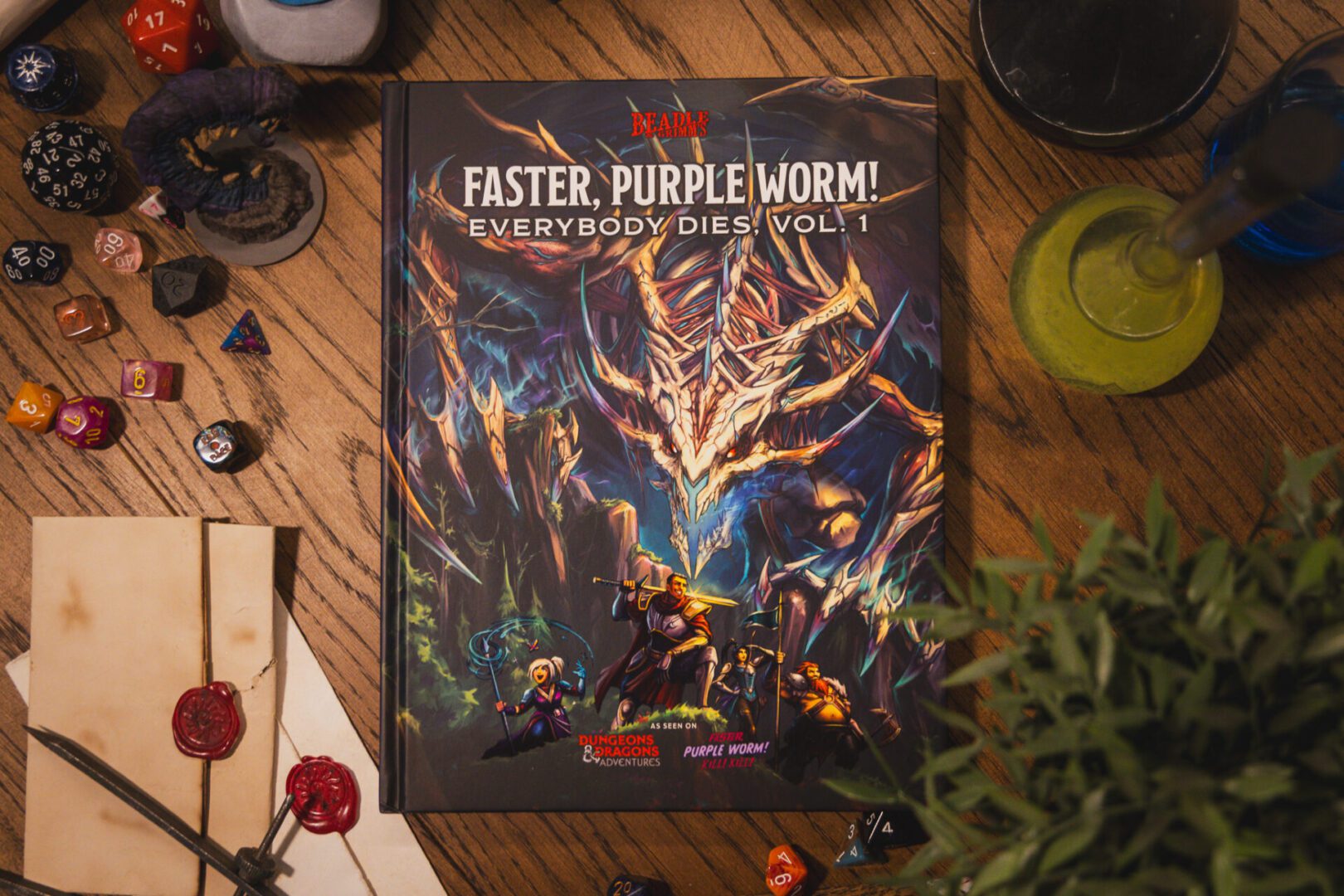 Faster, Purple Worm! on seiklusraamat, mis sisaldab 15 seiklust level 1 seiklejatele. Näita oma mängijatele, et surm ei pea alati olema iga hinna eest välditav ega kangelaslik. Selle raamatu seiklustes leiavad mängijad oma otsa erinevatel jaburatel viisidel.